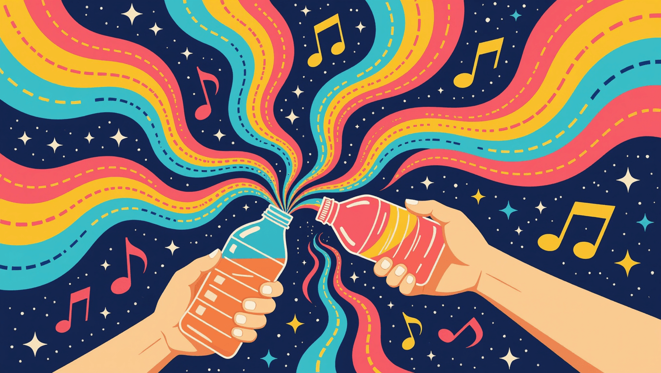 Squeezing an empty plastic bottle forces air out quickly through its narrow neck, making the air (and sometimes the bottle itself) vibrate to create that surprising whistling sound.