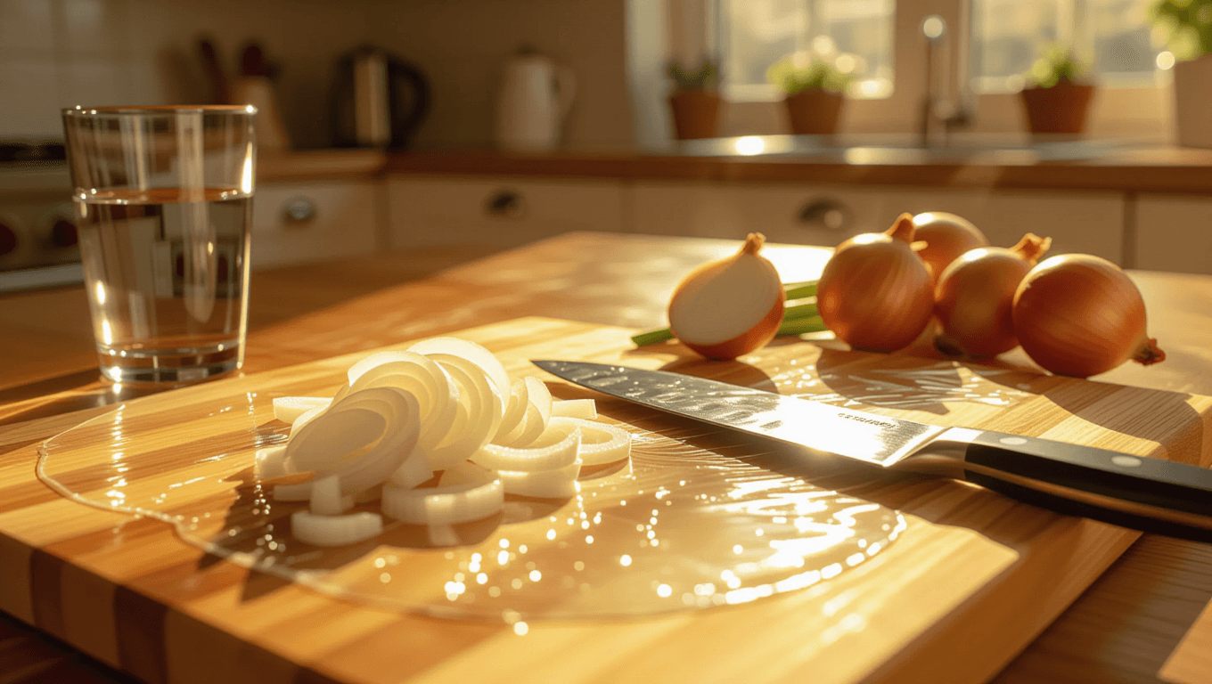 **That gummy residue from slicing onions is mostly natural plant sugars and starches released from the onion's cells, which get sticky when mixed with moisture.**